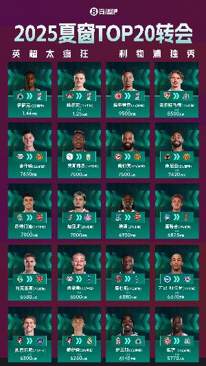 夏窗TOP10:轉(zhuǎn)會(huì)費(fèi)/新賽季數(shù)據(jù)