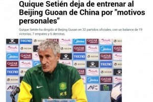 體育資訊10月6日訊 日前,西班牙媒體《馬卡報(bào)》、《世界體育報(bào)》報(bào)道了北京國安主帥塞蒂恩因“個(gè)人及家庭原因”辭職的消息。