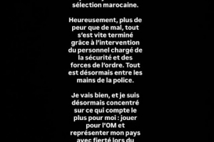 “幸運的是,驚嚇大于傷害,事件在安保人員和執(zhí)法部門的及時介入下迅速平息。目前一切已交由警方處理。我現(xiàn)在很好,也已將注意力重新放在最重要的事情上:為馬賽效力,并在即將到來的國家隊集訓(xùn)中自豪地代表祖國出戰(zhàn)?!?/p>