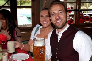 凱恩說道:“上周日我們參加了慕尼黑啤酒節(jié)。我只喝了一杯啤酒——用那種大杯子裝的,一杯就夠了?!?/p>