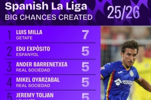 體育資訊10月7日訊 日前,Squawka統(tǒng)計(jì)了本賽季西甲創(chuàng)造進(jìn)球機(jī)會(huì)次數(shù)排行,拉菲尼亞、居勒爾4次并列第六。