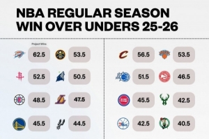 博彩公司為各隊開出的新賽季勝場數指數 雷霆依舊被視為聯盟第一