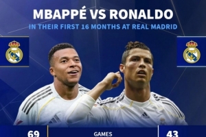 體育資訊10月8日訊 姆巴佩已為皇馬效力16個月,德國轉(zhuǎn)會市場統(tǒng)計了他與C羅在皇馬同期的數(shù)據(jù)。