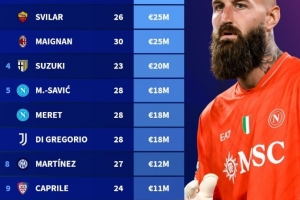 體育資訊10月9日訊 德國轉會市場公布了意甲門將最新身價情況,卡內塞基、斯維拉爾和邁尼昂以2500萬歐并列最高。