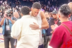 模仿布克走紅的網(wǎng)紅(CY布克??)在社媒上曬出與布克擁抱合影的瞬間,并寫道:“我真的太幸福了、謝謝@NBA幫我圓夢(mèng)?!?/p>