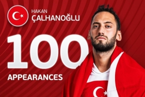 體育資訊10月12日訊 土耳其在本輪世預(yù)賽6-1大勝保加利亞,恰爾汗奧盧在本場(chǎng)比賽迎來(lái)土耳其100場(chǎng)里程碑。