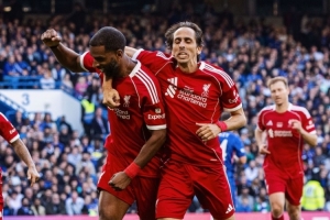 體育資訊10月12日訊 利物浦傳奇隊在客場1-0擊敗了切爾西傳奇隊,荷蘭前國腳巴貝爾打入制勝球,進球后他用模仿若塔慶祝動作的方式向他致敬。