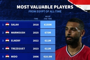 埃及球員德轉(zhuǎn)歷史最高身價排名: