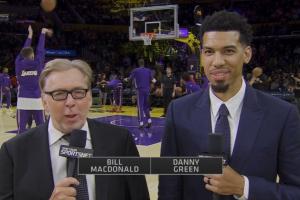今日前NBA球員、現(xiàn)湖人電臺Spectrum SportsNet解說員丹尼-格林現(xiàn)場解說湖人VS勇士的季前賽。