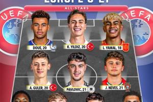 體育資訊10月13日訊 Score 90評(píng)選了歐洲U21年齡段的全明星陣容,亞馬爾、若昂-內(nèi)維斯領(lǐng)銜,其中西班牙三人,土耳其、法國(guó)、英格蘭各兩人,葡萄牙、德國(guó)各一人。