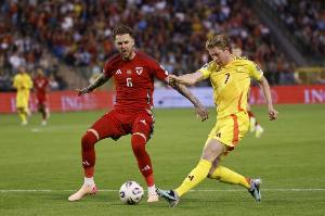 體育資訊10月14日訊 比利時對陣威爾士的比賽正在進行中,比利時2-1領先,德布勞內點射破門。