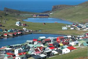 從托爾斯港出發(fā),沿著蜿蜒的海岸線行駛,不久便會抵達(dá)埃伊村(Eiei)。在這里,被譽(yù)為"世界最美球場"的埃伊迪體育場靜立在懸崖邊緣,如同一個勇敢的宣言,向浩瀚的北大西洋展示著人類的足球夢想。