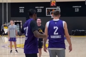 視頻當中,東契奇和范德比爾特互換球衣,兩人各自身穿對方的球衣進行訓練。