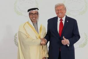 體育資訊10月14日訊 美國總統(tǒng)特朗普會面了阿聯(lián)酋副總理曼蘇爾,特朗普與其握手時笑容滿面:“非常多的現(xiàn)金,無限的現(xiàn)金,非常好的人?!?/p>
