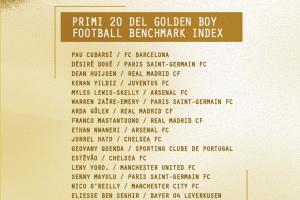 體育資訊10月15日訊 金童獎公布25人候選,庫巴西、杜埃、懷森、斯凱利、居萊爾、小貝林厄姆在列。