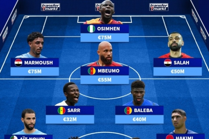 體育資訊10月16日訊 德轉(zhuǎn)盤點(diǎn)了非洲足聯(lián)球員的最高身價(jià)陣容,整套陣容總價(jià)值高達(dá)5.42億歐元。其中巴黎后衛(wèi)阿什拉夫以8000萬(wàn)歐元成為身價(jià)最高的球員,奧斯梅恩、馬爾穆什以7500萬(wàn)歐元緊隨其后。