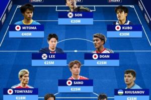 前鋒:孫興慜(2000萬歐)、三笘薰(4000萬歐)、久保建英(3000萬歐)