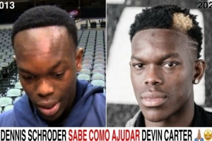 體育資訊10月16日訊 國外自媒體goatbr曬出了德文-卡特和隊(duì)友施羅德的發(fā)際線對比圖,并調(diào)侃到:“施羅德知道該怎么幫你?!?/p>