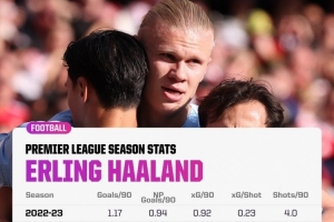體育資訊10月17日訊 據(jù)Opta統(tǒng)計(jì),哈蘭德本賽季每90分鐘射門(mén)、進(jìn)球等數(shù)據(jù)創(chuàng)造英超生涯新高。