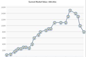 體育資訊10月17日訊 今日德轉(zhuǎn)更新英超球員身價(jià),25歲福登身價(jià)跌出億元,目前為8000萬歐,對(duì)比1年前1.5億歐的身價(jià)已經(jīng)腰斬。