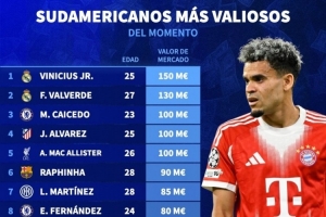 體育資訊10月18日訊 德國轉(zhuǎn)會(huì)市場(chǎng)更新了部分球員的身價(jià),并列出南美球員德轉(zhuǎn)身價(jià)排名,維尼修斯、巴爾韋德排名前兩位。