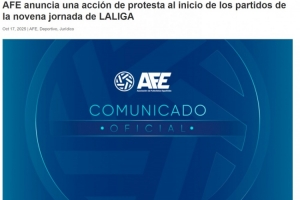 聲明寫道:AFE在西甲各隊(duì)隊(duì)長(zhǎng)的支持下宣布,在西甲第9輪所有比賽開(kāi)賽前進(jìn)行抗議,以表達(dá)對(duì)西甲缺乏透明度、缺少對(duì)話和未能保持一致性的不滿,特別針對(duì)在美國(guó)舉辦比賽的決定。