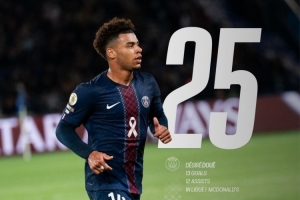 巴黎官方統(tǒng)計,杜埃職業(yè)生涯至今參與25粒法甲進球(13球12助),成為在法甲首位達成這一數(shù)據(jù)的2004年及之后出生球員,他出生于2005年6月3日。