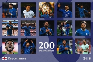 體育資訊10月18日訊 今天,切爾西在英超3-0擊敗諾丁漢森林,里斯-詹姆斯完成俱樂部200場里程碑。