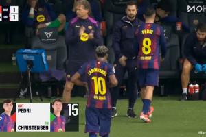 比賽第63分鐘,亞馬爾、佩德里被巴德吉和克里斯滕森換下。