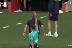 比賽補(bǔ)時(shí)階段,弗里克不滿裁判,兩黃變一紅被罰下!
