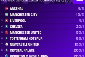 體育資訊10月20日訊 利物浦不敵曼聯(lián),遭遇聯(lián)賽三連敗。英超奪冠賠率方面,阿森納以5賠4的賠率成為最大的奪冠熱門。曼城以3賠10的賠率位居第二,利物浦則以1賠4的賠率排名第三。