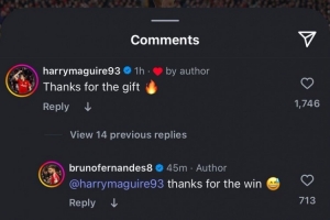 B費(fèi)賽后社媒曬照慶祝勝利,馬奎爾留言:“謝謝你的禮物?!?/p>