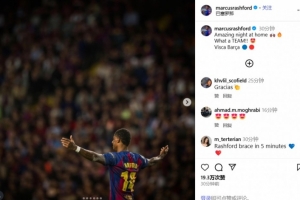 在社交媒體上,拉什福德慶祝了本場(chǎng)比賽的勝利,他寫(xiě)道:精彩的主場(chǎng)之夜,多么棒的一支球隊(duì)!加油巴薩!