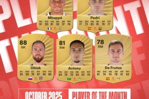 體育資訊10月22日訊 西甲公布了10月份最佳球員的5人候選名單,姆巴佩、佩德里、安東尼在列。