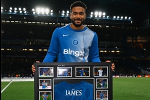 里斯-詹姆斯在本場(chǎng)比賽達(dá)成切爾西生涯200場(chǎng)里程碑,他在賽前也展示了俱樂部為其贈(zèng)送的紀(jì)念相框,主體為印有200字樣的他本人的球衣,周邊則是包括捧得世俱杯和歐冠在內(nèi)的高光時(shí)刻。