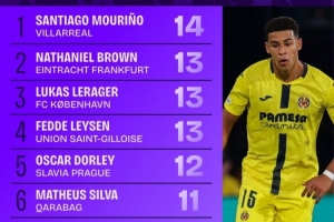 1.圣地亞哥-穆里尼奧(比利亞雷亞爾):14