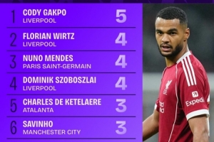 體育資訊10月23日訊 本賽季歐冠聯賽階段已戰(zhàn)罷3輪,Squawka統(tǒng)計了到目前為止創(chuàng)造絕佳機會榜單,加克波5次第一,維爾茨等3人4次分列二至四位。