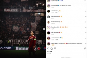 范戴克在賽后通過社媒曬出自己賽后向球迷們致意的謝場照,并配文:“球場中的男人?!?/p>