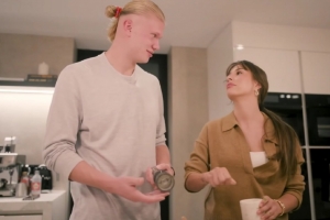 和女友一起烹飪時,場上兇猛的哈蘭德展現(xiàn)出了溫柔的一面。兩人是小時候在挪威Bryne當(dāng)?shù)厍嘤?xùn)學(xué)院效力時認識的,哈蘭德形容伊莎貝爾的球風(fēng)像吉格斯,有著同樣犀利的左路突破和精準傳中。兩人互相調(diào)侃時,哈蘭德顯得很開心。伊莎貝爾嘲笑他缺乏盤帶能力,并說她最初喜歡的是他的好朋友。