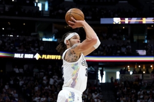 體育資訊10月24日訊 NBA常規(guī)賽,掘金上半場(chǎng)以70-59領(lǐng)先勇士。