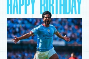 曼城官方社媒曬出京多安的生日海報,配文:“生日快樂,伊爾凱?!?/p>