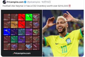 熱愛CS2的巴西球星內(nèi)馬爾也未能幸免,據(jù)PriceEmpire披露,內(nèi)馬爾原本超過20萬美元的個人《CS2》飾品庫存,僅在過去24小時內(nèi)就縮水約5萬美元。