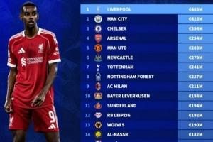 2025年俱樂(lè)部轉(zhuǎn)會(huì)費(fèi)支出榜:利物浦4.83億歐居首,前8均來(lái)自英超