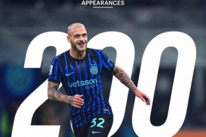 國米官推為其曬出紀(jì)念海報(bào),并配文:“200場比賽,無限的激情!”