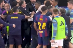 體育資訊10月27日訊 據(jù)西媒eldesmarque報道,國家德比比賽臨近結(jié)束時,巴薩中場佩德里吃到第二張黃牌被罰下場,這一事件成為了“導(dǎo)火索”,直接引發(fā)了雙方替補席人員的“大規(guī)?;鞈?zhàn)”。場面一度失控,以至于安保不得不迅速介入,強行將兩隊替補席分隔開。