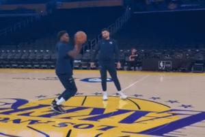 在對陣湖人的賽季揭幕戰(zhàn)最后時刻,庫里接小佩頓傳球用超遠三分殺死了比賽懸念。
