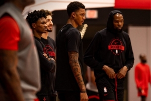 期待新賽季!火箭曬訓(xùn)練照:烏度卡指導(dǎo)謝潑德 杜蘭特微笑傾聽