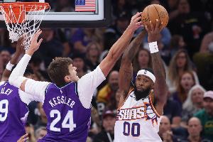 此役,爵士中鋒凱斯勒打出上佳表現(xiàn),進攻高效,防守給力。