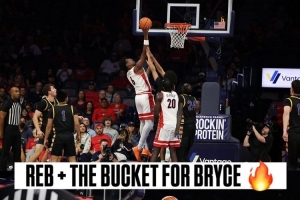 詹姆斯轉(zhuǎn)發(fā)了亞利桑那大學(xué)男籃官方賬號發(fā)布的他的小兒子布萊斯在比賽中完成補(bǔ)籃的照片,并配文道:“耶——6號!”
