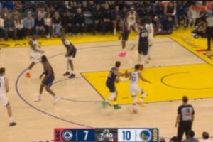 GIF-庫(kù)明加擊地妙傳助庫(kù)里上籃得分